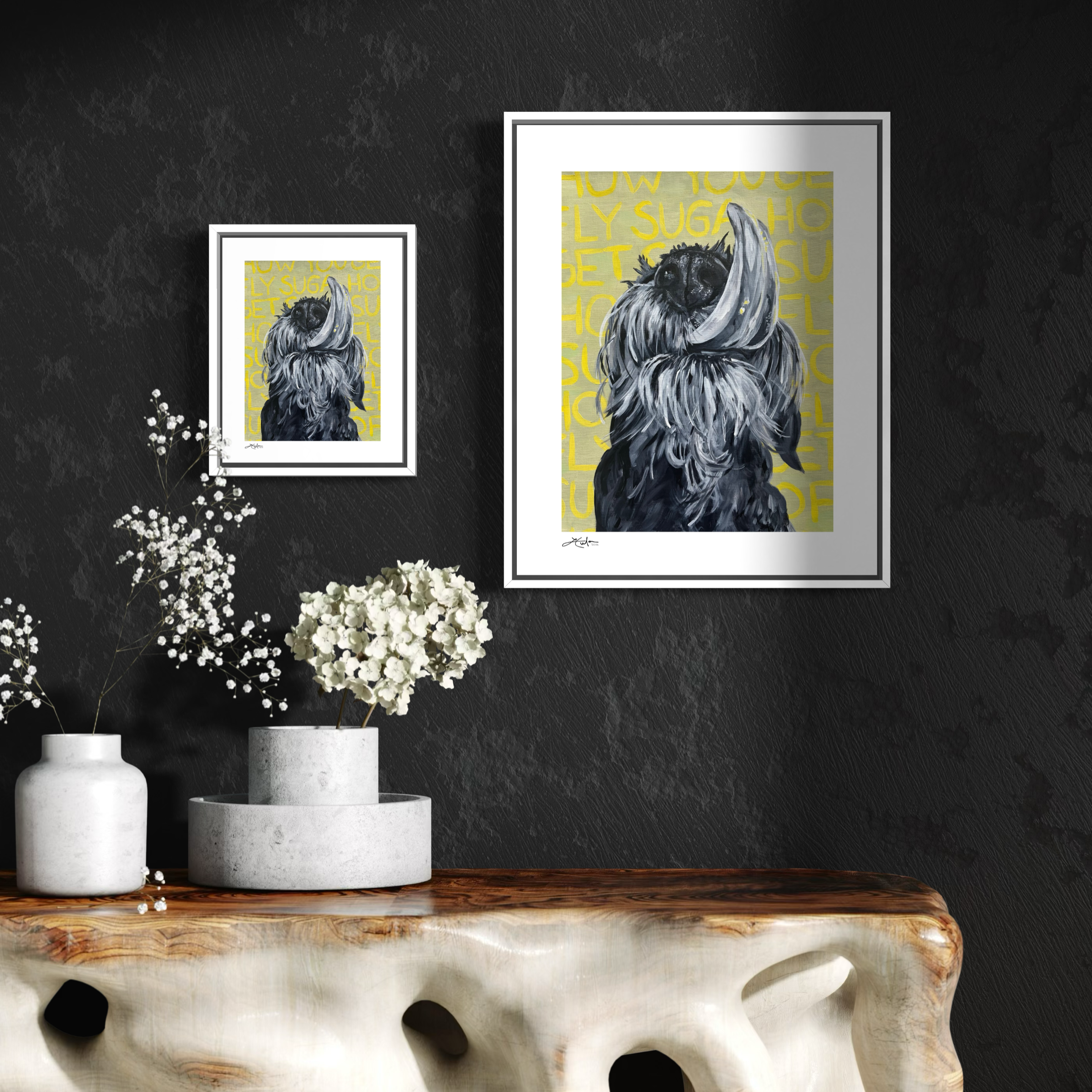 Part of the Dog Tracks collection—celebrating the unapologetic way dogs experience the world: pure joy, big personalities, and endless loyalty. Each artwork pairs expressive portraits with iconic song lyrics, creating pieces that feel nostalgic, playful, and full of life.